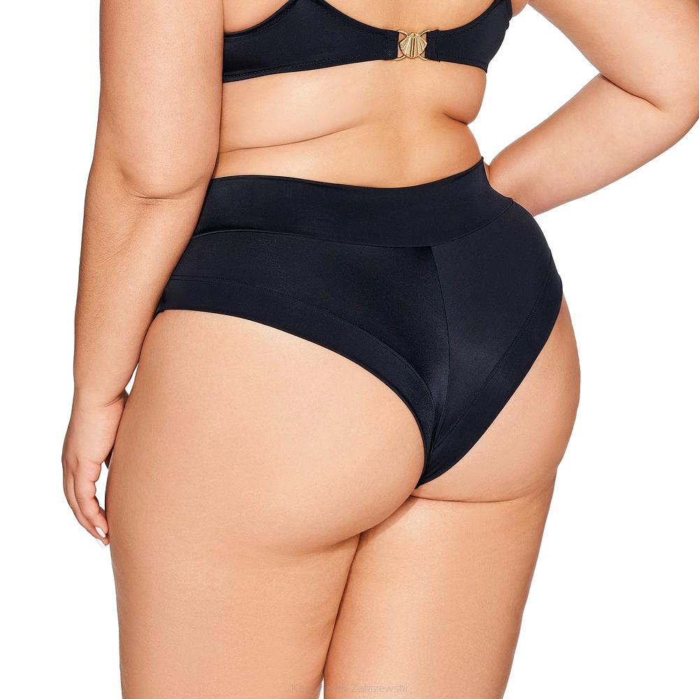 Czarne brazyliany SF 13/15/B to esencja plażowej elegancji w minimalistycznym wydaniu. Prosty, a zarazem intrygujący krój doskonale podkreśla linię bioder, a szerokie pasy nachodzące na siebie w talii tworzą efekt wysmuklający i przyciągają spojrzenie. Wysoko wykrojone nogawki optycznie wydłużają nogi, dodając sylwetce lekkości.
