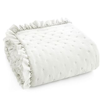 Stylowa narzuta dekoracyjna LIBI jednokolorowa, wykonana techniką hot press z przyjemnego w dotyku materiału, od producenta Eurofirany. Narzuta obszyta jest na brzegach romantyczną falbaną.