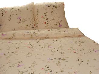 Prezentowany komplet pościeli posiada piękny delikatny kwiatowy wzór, w pastelowych kolorach. Całość wygląda bardzo stylowo i elegancko.